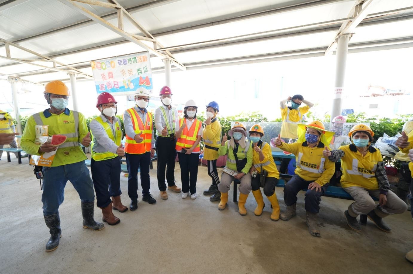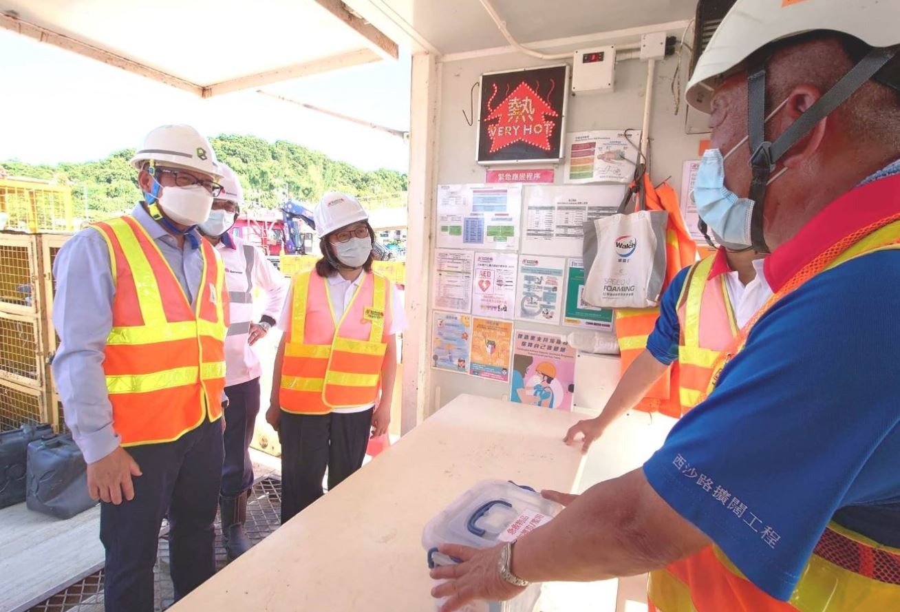 本港酷熱天氣持續,多區錄得超過三十六度,上水更一度錄得三十八點八度高溫,為了建設香港,各建造業工友在工地工作時汗流浹背,但他們仍然堅守崗位,絕對值得尊敬,所以我與發展局局長在今天去到將軍澳海水化淡廠及西沙路兩個工地,了解前線工友的工作情況,同時派發冰凍飲品及西瓜等消暑食物補充體力,為他們打打氣。