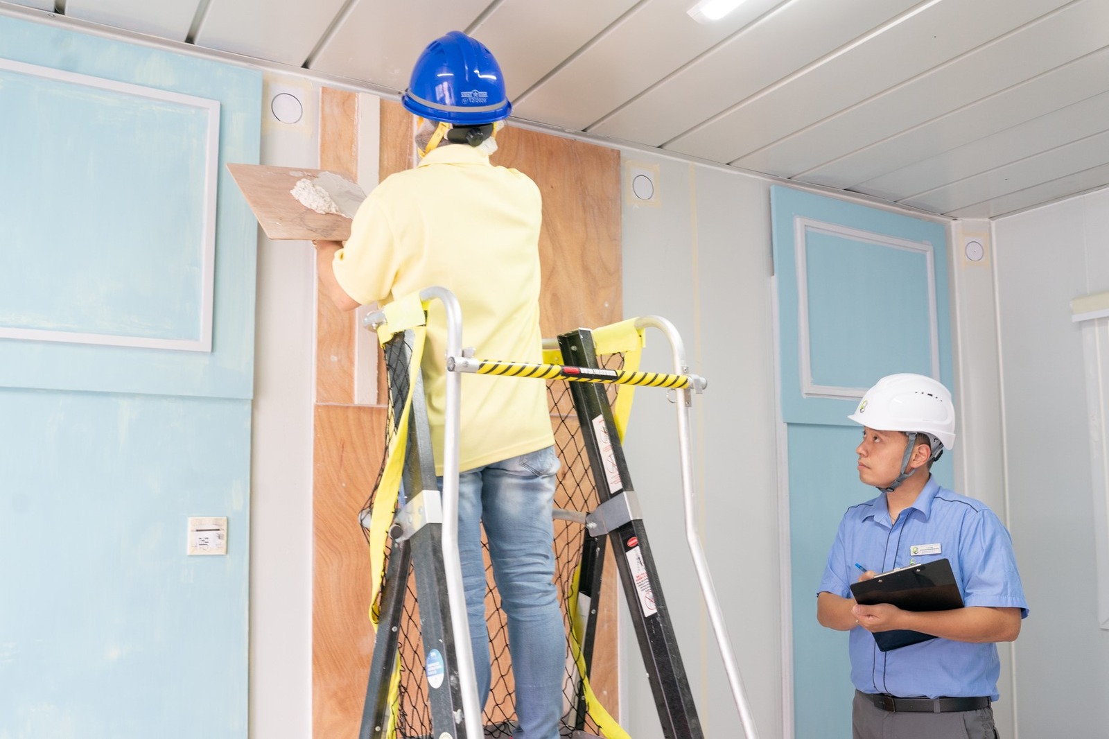 議會在考慮行業趨勢及人手需求後,決定於新田訓練場提供「髹漆及裝飾工中級工藝測試」。隔離單位經改裝後成為不同工藝的課室及試場,以進行工藝測試。「髹漆及裝飾工中級工藝測試」要求工友需獨自調和合適的油漆,在監考員監察下,完成「水性磁漆」、「乳膠漆」及「批填漆灰」3個測試項目。測試場地均設有測試樣辦,以助考生了解測試的收貨標準。