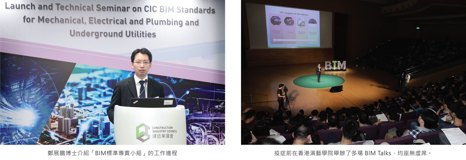 建造業議會過去幾年做了不少工作來推動 BIM,在2017年成立「建築信息模擬專責委員會」,組織業界持份者群策群力在香港推廣BIM應用、建立 BIM行業標準、提供BIM課程培訓、推行BIM認可及認證計劃等。經過三年努力,BIM專責委員會已經頒布了「通用」、「建築與結構工程」、「機械、電氣及管道」、「地下管線」、「製備法定圖則呈交」、「信息交換需求範本」和「物件製作」等BIM標準。當中負責的「BIM 標準專責小組」,主席是首屆建造業傑出青年鄭展鵬博士,難怪可以在這麼短的時間做出如此大量的工作。