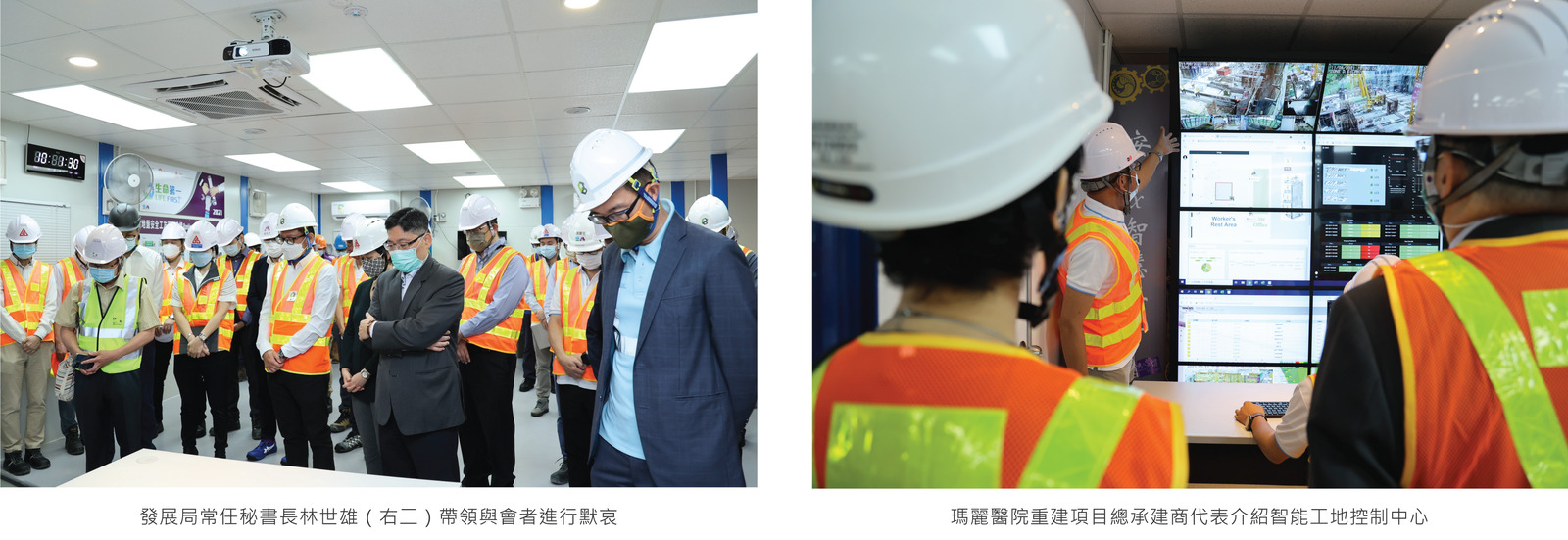 瑪麗醫院重建項目的總承建商「保華─安保聯營」,應用了很多新科技及智能安全設施來協助提升工地安全。工友在進行高危工作之前,需要接受「虛擬實境」的訓練,戴上3D 眼鏡進入模擬工地場景,在銀幕上感受一下現場環境;另外為提升工程安全系數,項目採用人面識別開鎖器、智能手帶、智能安全帽、危險範圍警報系統等,為工友提供額外保障。