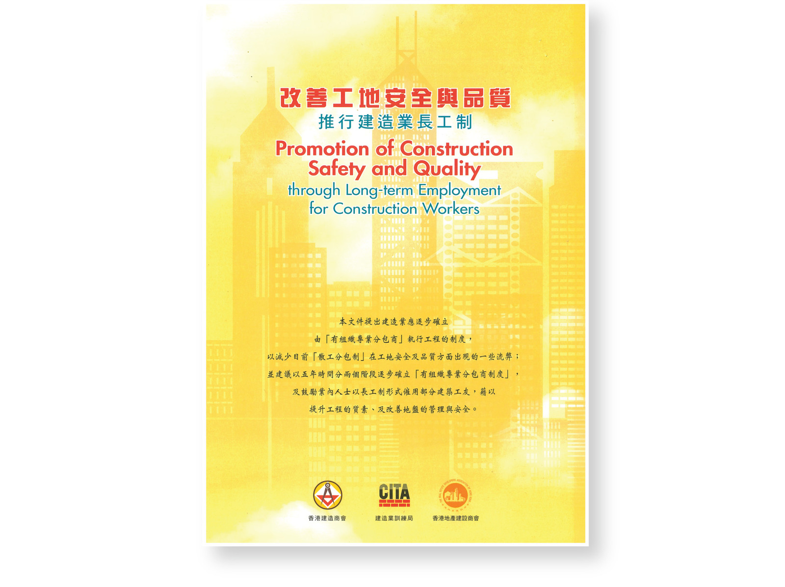 廿多年前當我出任建造業訓練局主席的時候,曾經試圖推動「有組織專業分包商制度」,鼓勵分包商以長工制形式僱用部分建築工人、支持學徒培訓、減少分包層次及取締「皮包」公司等。可能是當時香港建造業的營商條件、政府管治水平和各方面的時機還未成熟,隨着我的任期完結,由業界領䄂一起簽署的約章,也畫上了休止符。