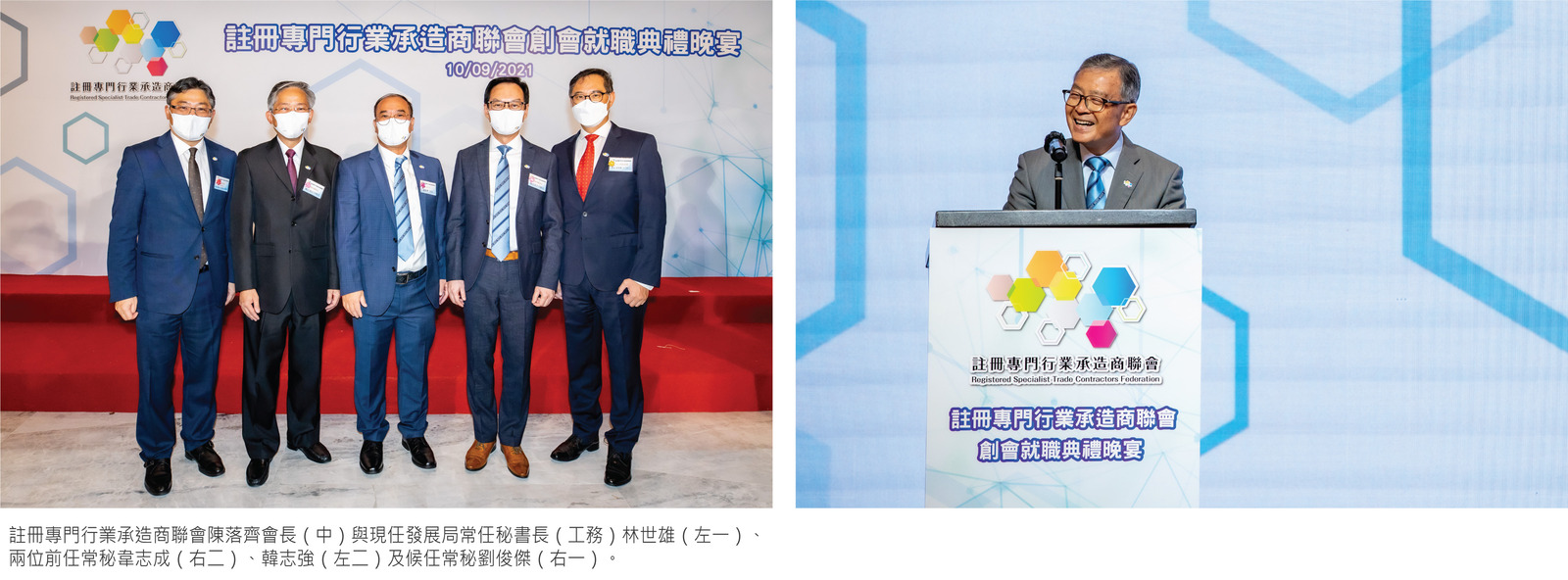 截至 2021 年八月底,RSTCS涵蓋了八個指定行業,即拆卸、扎鐵、泥水、安裝混凝土預製構件、混凝土模板、澆置混凝土、棚架及玻璃幕牆。有161間第二組別(大牌照)和1,749間第一組別(普通牌照)的專業分包商成功註冊,很多亦已經加入了「註冊專門行業承造商聯會」(承造商聯會)成為會員。承造商聯會在9月10日舉辦創會就職典禮,邀請了發展局常任秘書長林世雄和我作主禮嘉賓。在致辭中我感謝大家完成了一件我一直都很想做的事,特別多謝曾燈發、陳落齊、張玉其、王麒銘、陳橋森幾位承造商領袖幫忙向業界落力解說,發展局前任和現任常秘韓志強和林世雄在政策上的配合及RSTCS專責委員會主席陳志超的精心策劃。假若這八位菩薩早一點來到這個娑婆世界,聯會現在應該廿多歲了。