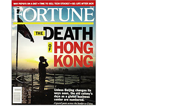1995年香港回歸祖國之前,美國《財富》雜誌(Fortune)曾以"The Death of Hong Kong"《香港之死》作封面專題,預言回歸之後將會解放軍橫行、貪污腐敗、國際投資撤離香港,到時香港將會成為一潭死水,諸如此類。