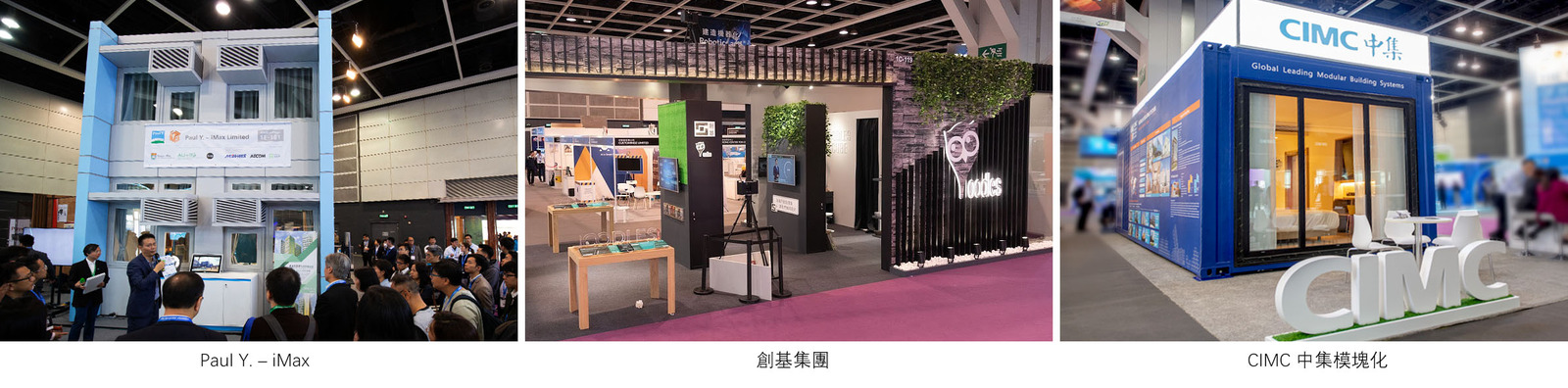 香港大學黃竹坑學生宿舍的MiC 承建商「Paul Y. – iMax」、科學園「創新斗室」項目的MiC 供應商「CIMC 中集模塊化」,以及其他MiC供應商不計成本,將不同項目的MiC實物示範單位運到展覧場館,吸引了大量人士參觀。其士建築的混合結構模塊化浴室、創基集團的高科技百變傢俬組合、實運集團的智能重型模塊組合式平板運輸車,均是參觀者的打卡熱點。