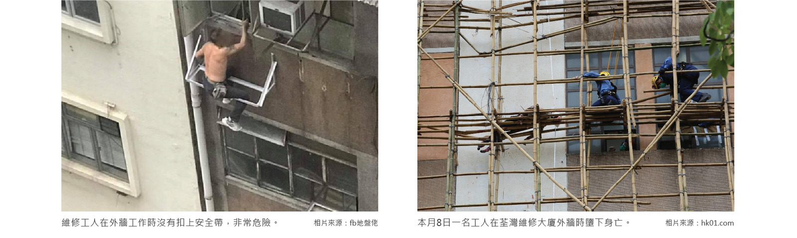 舊樓外牆相關的維修工作是死亡陷阱、嚴重工業意外的火藥庫,是一個不可以逃避的議題,社會始終要面對和解決。