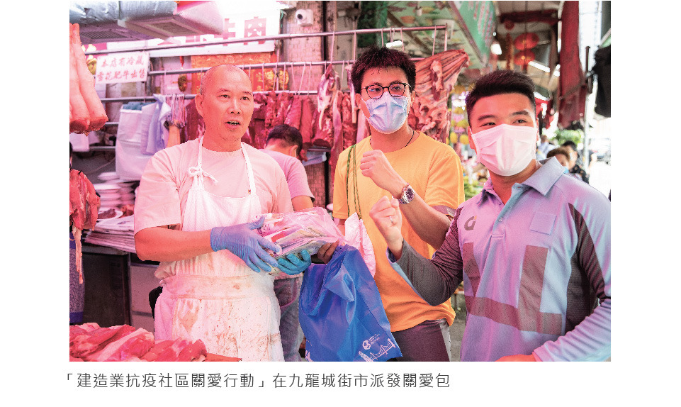 響應建造業議會「抗疫社區關愛行動」的呼籲,在五一勞動節與廿多位建築界領袖及義工朋友,到我兒時生活的九龍城派發抗疫關愛包。配合當時「限聚令」的要求,我們三四個人一組,走遍九龍城各主要街道。我與香港工程師學會會長余錫萬、他的兒子卓賢及年青建築人陳文毅老中青組合,穿起建造業工人服,負責城南道和龍崗道,剛巧是我出生和讀書的地方。大隊一共向在街市、垃圾站、報紙檔、茶餐廳、車房等地方工作的工友,派發了八千個口罩和千多支消毒搓手液,小小的心意加上一句「勞動節快樂」,讓千多位辛勞的工友,感到人間有情。