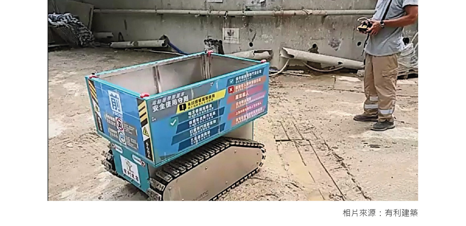 有利建築一向勇於嘗試新事物,在「建築工業化」── MiC、DfMA範疇走得很前,在應用人工智能方面也做得不錯。早前在有利建築的地盤,看到一位年青工友輕鬆地無線遙控一輛電動運輸車運送建築物料及工具,原來這也是CITF資助的項目。地盤老總雄哥說,運輸機器人能取替人手搬運重物,有效避免工傷意外及提升效率。