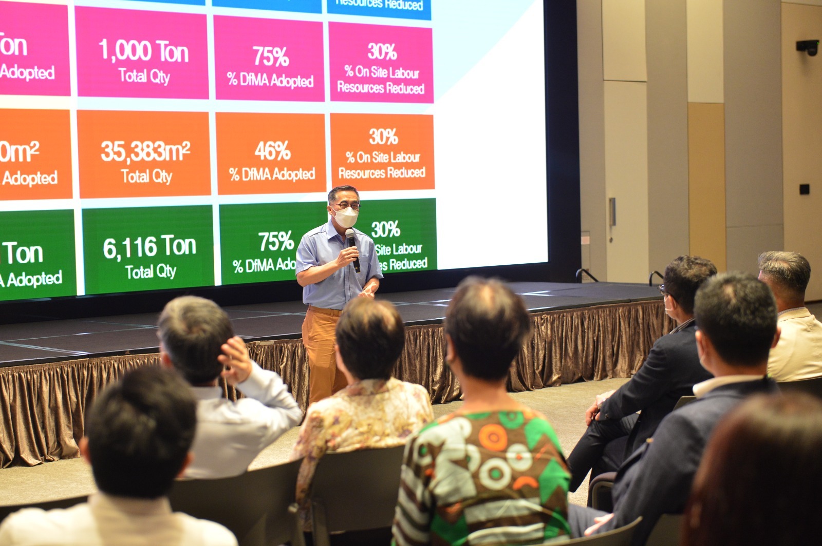 Gammon Construction, contractor of AMC, shared the experience of adopting the "Design for Safety Approach". Statistics showed that the method could enhance worker safety, improve efficiency and reduce labour costs. The AMC project used the Design for Manufacture and Assembly (DfMA) approach extensively, with more than 70% steel structure and electromechanical components prefabricated in the factories. The DfMA approach significantly reduced construction time and had a significant impact on this project which was under a tight working schedule. Assembling components in the factory could also save 30% of labour costs. Representative of the HKSTP pointed out that the application of a variety of advanced building technologies for AMC could serve as a precedent. He also emphasized that "safety means efficiency, you don't have to worry about work suspension due to casualties, or the potential troubles derived from legal disputes."