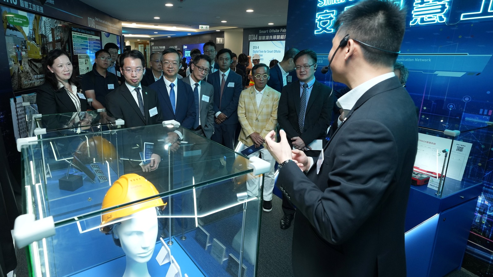 When construction sites become more intelligent and digitalised, the adoption of digital twin technology could be extensive. The recently opened 'CIC Digital Twin Hub' is in CIC's Kowloon Bay office. It features four feature areas, including an exhibition area, a smart construction site management area, a multi-purpose area, and a Digital Twin Lab. Six smart applications of digital twin technology are showcased: data sharing, asset and facility management, submission with building information modeling, offsite fabrication and delivery, site management, planning and design. These facilities and presentations are designed to nurture future digital engineers and coordinators while strengthening the core competitiveness of enterprises. The Digital Twin Hub is now open for visits, Mr. David LAM, Under Secretary for Development and his team visited the Hub earlier to understand the performance of digital twin in assets management, energy saving, reduce embodied carbon and central management platform with data adopted in construction site for safety management. We look forward to meeting you at the Hub!