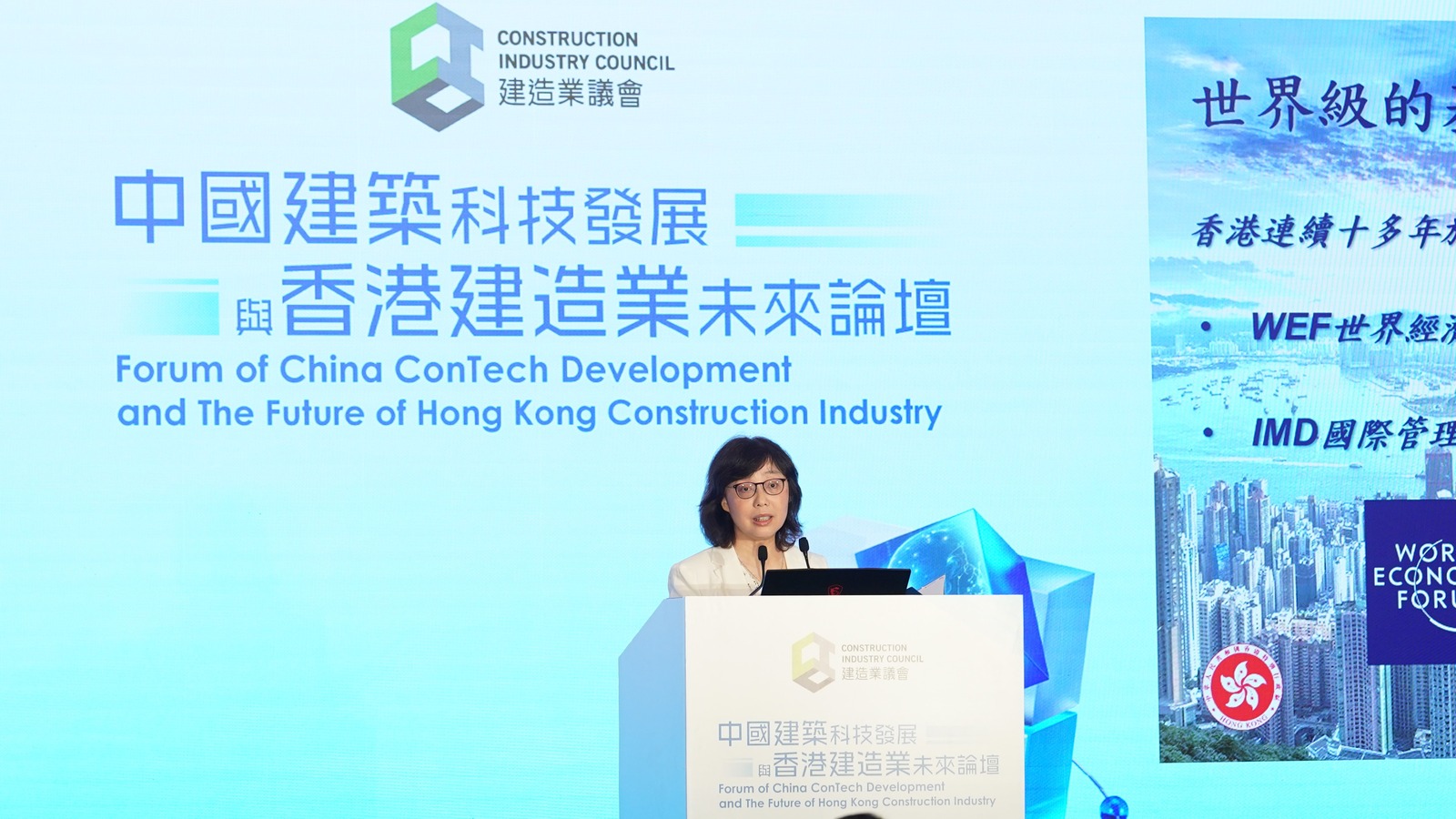 The Forum covered R&D and application of frontier construction technology, as well as market situation and development stage of the construction industry. Some speakers touched on internationalisation of China’s construction industry and provided insightful views. Among them, Ms. Bernadette Linn, Secretary for Development, mentioned that “(Hong Kong) plans to establish a Construction R&D and Testing Center to provide a platform for aligning our country's construction standards and products with those in the international market. (The Center) will assist our nation’s construction materials and related products entering the international market, while facilitating mutual standard recognition between our national standards and international standards.” I eagerly anticipate the strong alliance between Hong Kong and the Mainland to connect the world!