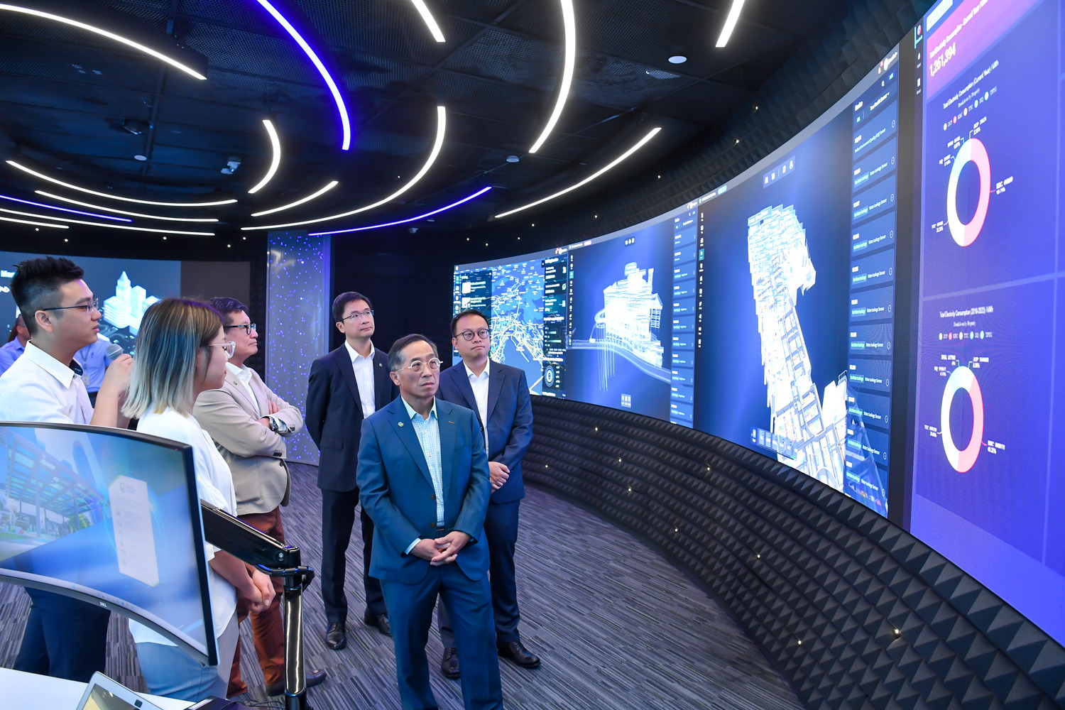The Centre is equipped with LED walls, a wireless presentation system and extra-large LED touchscreens. The dashboards present the system's 'digital brain.' 3D digital twin images are available to visualise the property, assisting managers in optimising operations and management strategies. The dashboards can display the reports in 4 levels: Level 1 – an overview of the CIC premises in GIS. Level 2 – an overview of real-life building performance for a specific premise with digital twins. Level 3 – a detailed view of building services systems and IoT. Level 4 – a detailed view of each field equipment and asset.