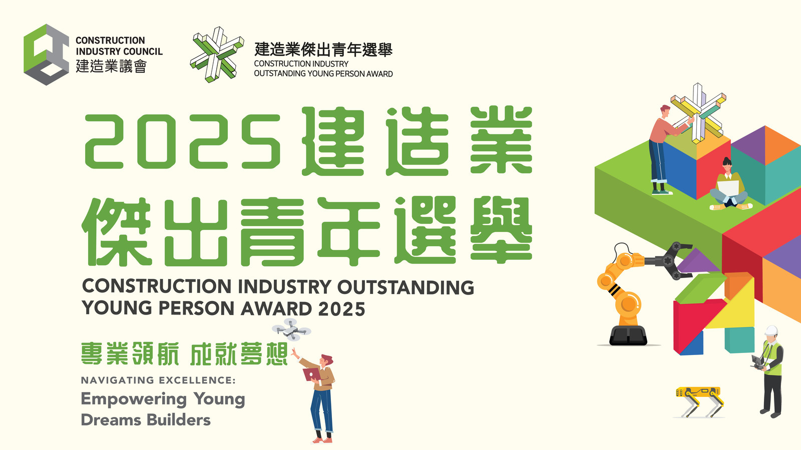 Talent development requires not only financial resources but also recognition. The CIC's "Construction Industry Outstanding Young Person Award" is now open for nominations. The event aims to recognise young construction professionals whose professionalism and innovative thinking are driving the industry forward. The biennial award has reached its fourth iteration, and this year's theme is "Navigating Excellence: Empowering Young Dreams Builders". There are three award categories: "Business and Management" ,"Frontline Construction Personnel", and "Technology Transformation, Design, Academic and Others."