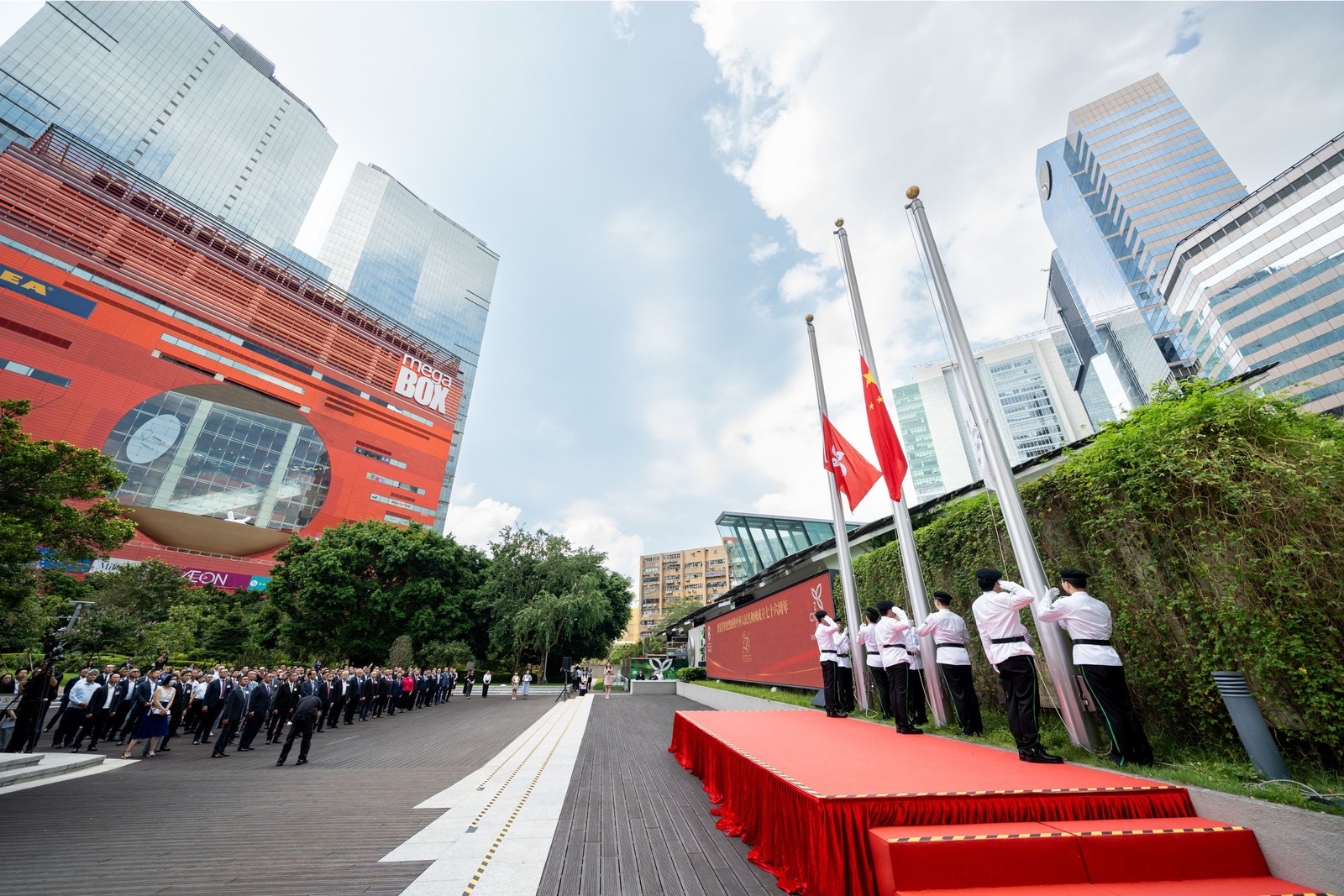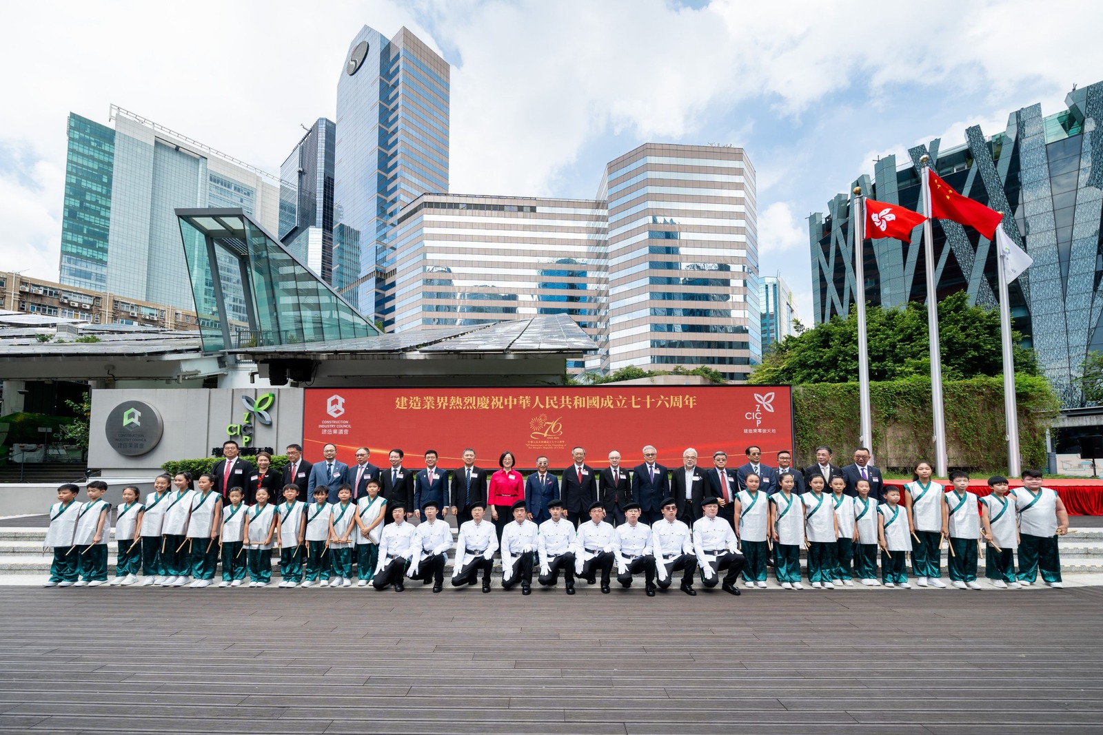 On National Day this year, I was joined by members of the CIC, members of the Zero Carbon Building Management Board, and CIC colleagues at the flag-raising ceremony held in the Eco-plaza of the CIC-Zero Carbon Park. The occasion was graced by Mr. Victor TAI, Under Secretary for Housing, Miss. Pamela LAM, Deputy Secretary (Works) of the Development Bureau, representatives from the Liaison Office of the Central People's Government in the HKSAR, as well as over a hundred guests from the construction industry, who enhanced the ceremonial splendour. The flag-raising team, comprising students from the Hong Kong Institute of Construction, marched in with energetic Chinese-style drills. They looked energetic and gallant. The Chinese drum team from the Hong Kong Chinese Women's Club Hioe Tjo Yoeng School gave a live drum performance, creating a fervent atmosphere. It was deeply gratifying to see young people from Hong Kong proudly expressing their profound affection for their home and country.