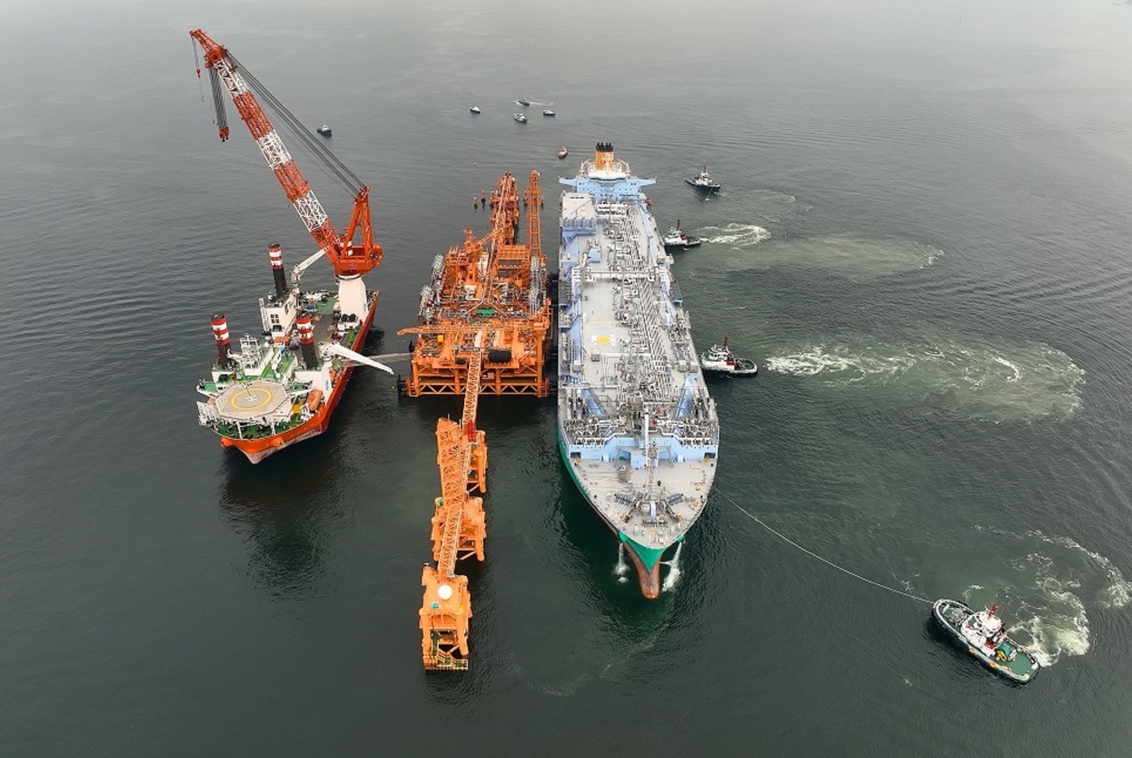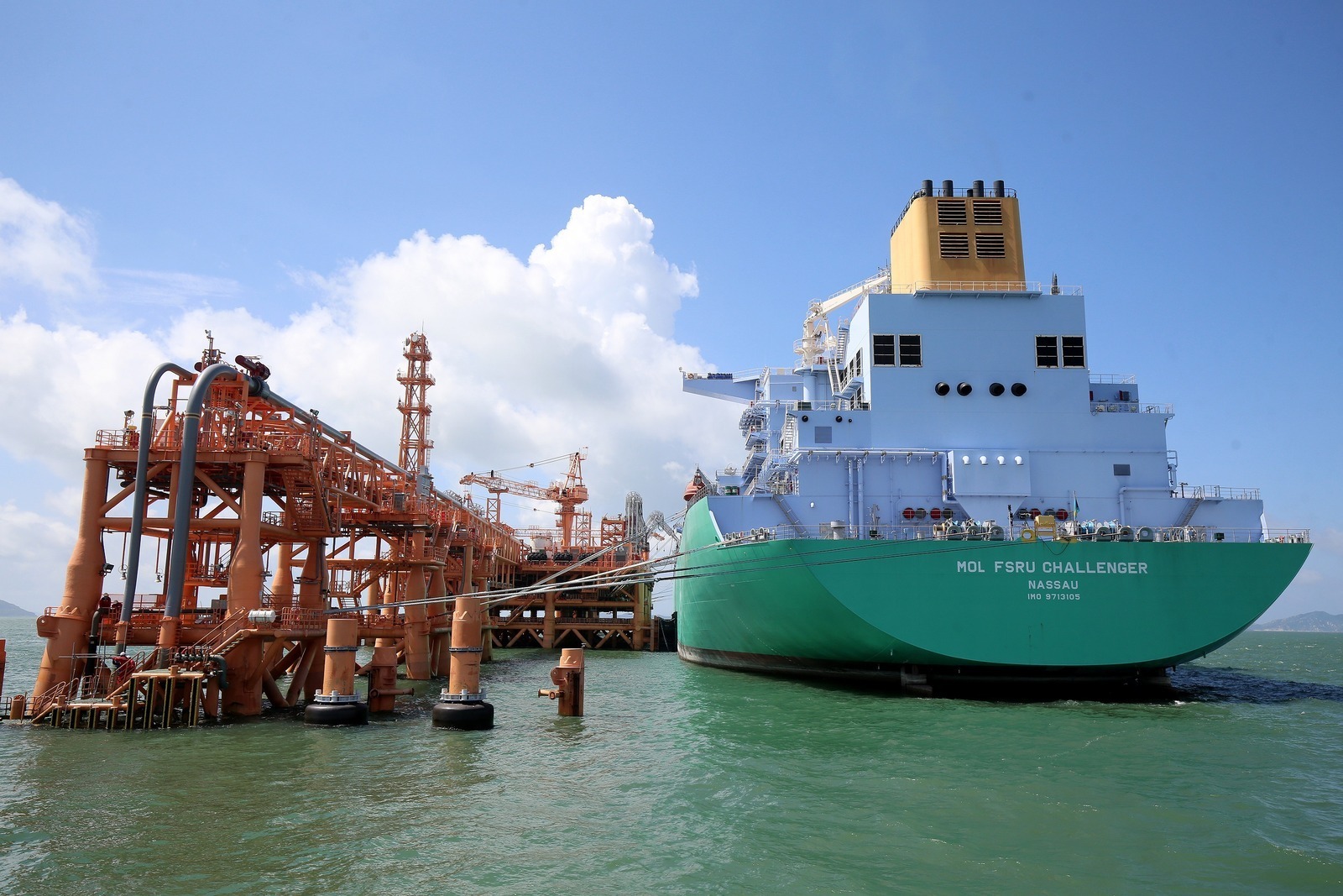 Offshore project is susceptible to environmental factors, and especially when the manufacturing facilities and ports were put under “closed‑loop management” during the pandemic, it is more desirable to use prefabricated components to control the quality of the terminal structure. Not only does it minimise offshore construction work, but it also expedites the whole work process. The LNG terminal was assembled by using a similar method as the Modular Integrated Construction (MiC) approach, which follows the principle of "factory assembly followed by the on-site installation", and successfully overcame the challenges of offshore construction. The major components of the terminal have been assembled in the fabrication yard and then completed with fixtures, fittings, equipment, piping, marine loading arms, tower cranes, etc., before being delivered to the site for installation. In addition, factory acceptance tests for major equipment and control systems were also conducted in the fabrication yard so as to minimise rectification or replacement work on-site. The hook-up stage is therefore shortened.