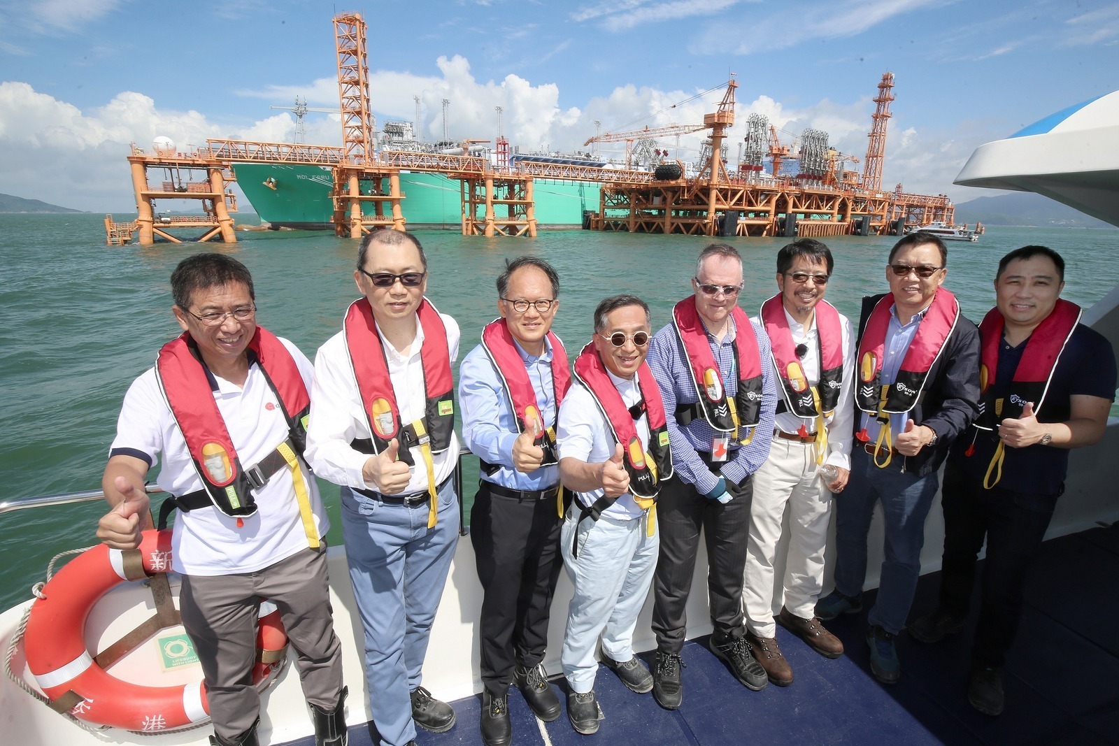 The limited land supply in Hong Kong makes it very difficult to build natural gas facilities in residential areas. Therefore, after comprehensive research, the project team set up the facilities in a remote location in the southwest waters of Hong Kong. This minimises the impact on residents while facilitates the transportation of natural gas with its proximity to the border, providing greater flexibility in natural gas procurement strategies. The construction of the offshore LNG terminal includes several key infrastructures such as a double berth jetty with LNG unloading equipment, FSRU vessel “Bauhinia Spirit” permanently moored at the terminal, which is the world’s largest FSRU vessel and has an LNG storage capacity of 263,000 cubic metres, and two subsea natural gas pipelines. These pipelines connect the terminal to the natural gas receiving stations at CLP Power's Black Point Power Station and HK Electric's Lamma Power Station. The scale of the project is significant, and the team overcame unprecedented engineering challenges and safety requirements. Furthermore, offshore maritime engineering is susceptible to environmental factors such as winds, waves, and weather conditions. Additionally, the remote location of the project requires the team to adapt to the new working condition. To facilitate work at the jetty, they stayed on the construction vessel, racing against time and weather to complete this forward-looking engineering feat.