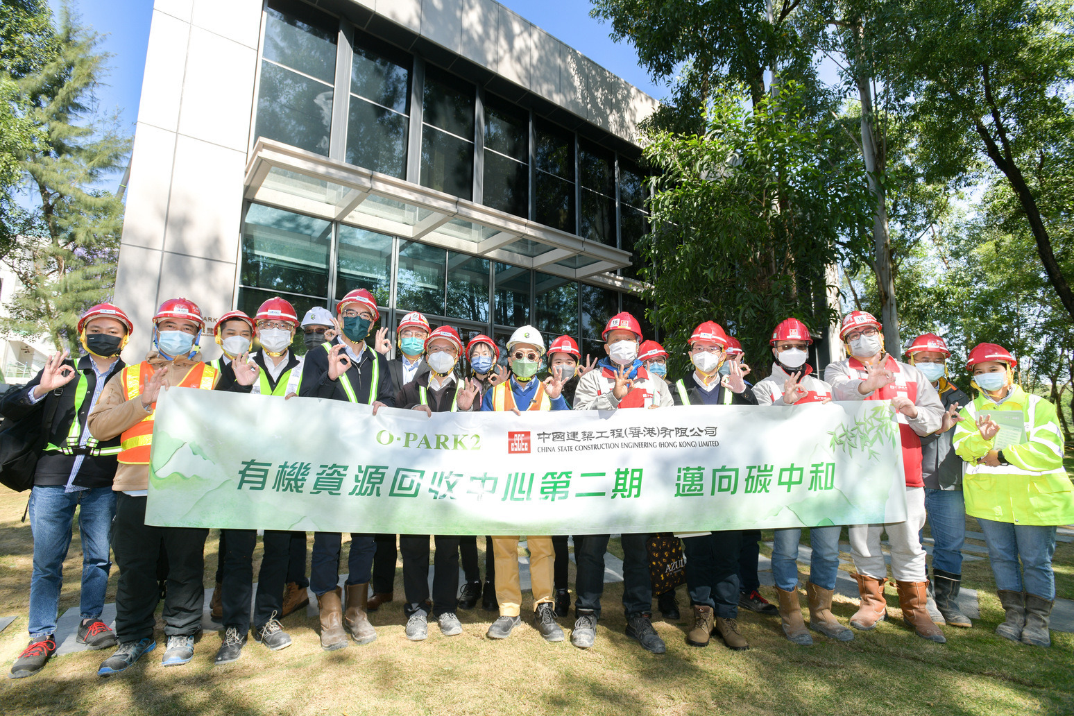 Benefiting from the “Design, Build Operation” pattern, O⬝PARK2 successfully become the first carbon neutrality project of China State Construction Engineering (Hong Kong) Limited (CSHK). The project team issued the first Carbon Neutrality Commitment in November 2021, pledged to achieve carbon neutrality during construction period through sustainable management, technological innovation and supporting voluntary emission reduction projects. Dr Jason CUI, Assistant Design Manager of O⬝PARK2 said that, an Integrated Design Approach (IDA) was adopted at the design stage, taking the long-term O&M requirements throughout building life cycle into consideration. “Experts with different expertise such as food waste treatment process, civil engineering, structure, surveying and low-carbon construction were called up to discuss and plan how to simplify construction procedure and thus enhance energy efficiency.” The project also extensively applied building information modelling (BIM) technology and integrated the CIC Carbon Assessment Tool with the BIM model in an innovative approach, facilitating the carbon assessment during the design and construction stages, and empowering the management and monitoring carbon emissions from building materials and construction procedures through an effective manner.