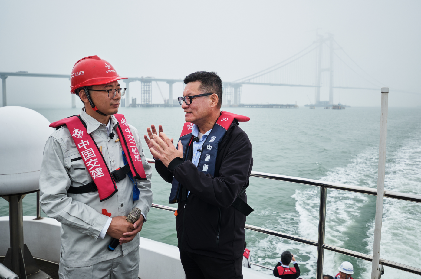 Connecting Shenzhen and Zhongshan, the Shenzhong Link is a world-class cluster of cross-harbour projects with interconnections between islands, tunnels and bridges. The 24-kilometre-long passageway is expected to open to traffic in 2024. Earlier, Ir Albert CHENG, Executive Director of the Construction Industry Council (CIC), led industry leaders on a trip to the West Artificial Island to learn more about the innovative construction technology involved. Introducing the project, GAN Xingqiu, Deputy General Manager of CCCC First Harbor Engineering Co., Ltd (CCCC-FHEC), said, "This project of the century will greatly shorten the commuting time between the east and west sides of the Pearl River Estuary and help promote the development of the Guangdong-Hong Kong-Macao Greater Bay Area city cluster.
