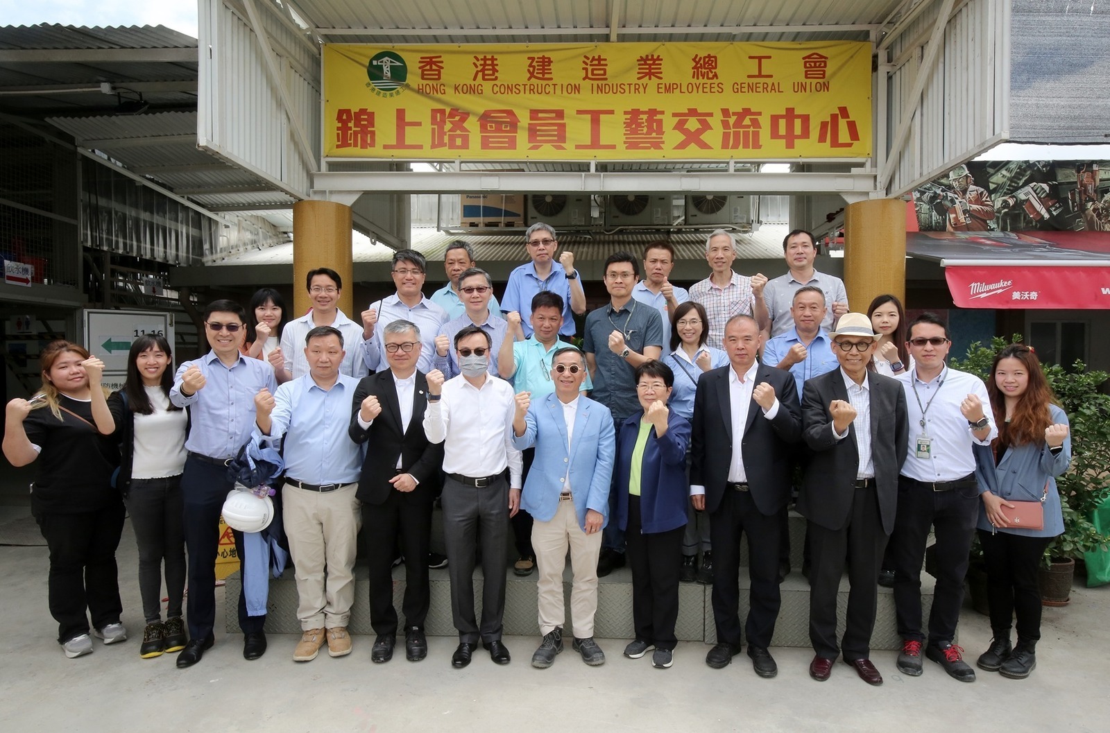 With the accelerated development of innovative technology, the construction industry is entering the era of "Industry 4.0". However, traditional construction skills are still in demand and many hope to learn these techniques for entering the industry. Recently, Ir Thomas HO, Chairman of the Construction Industry Council (CIC) and Mrs. LO LEE Oi-lin, member of the CIC, have visited the Hong Kong Construction Industry Trade Exchanging Centre under Hong Kong Construction Industry Employees General Union (HKCIEGU) earlier. They toured the training ground and observed the progress of students.