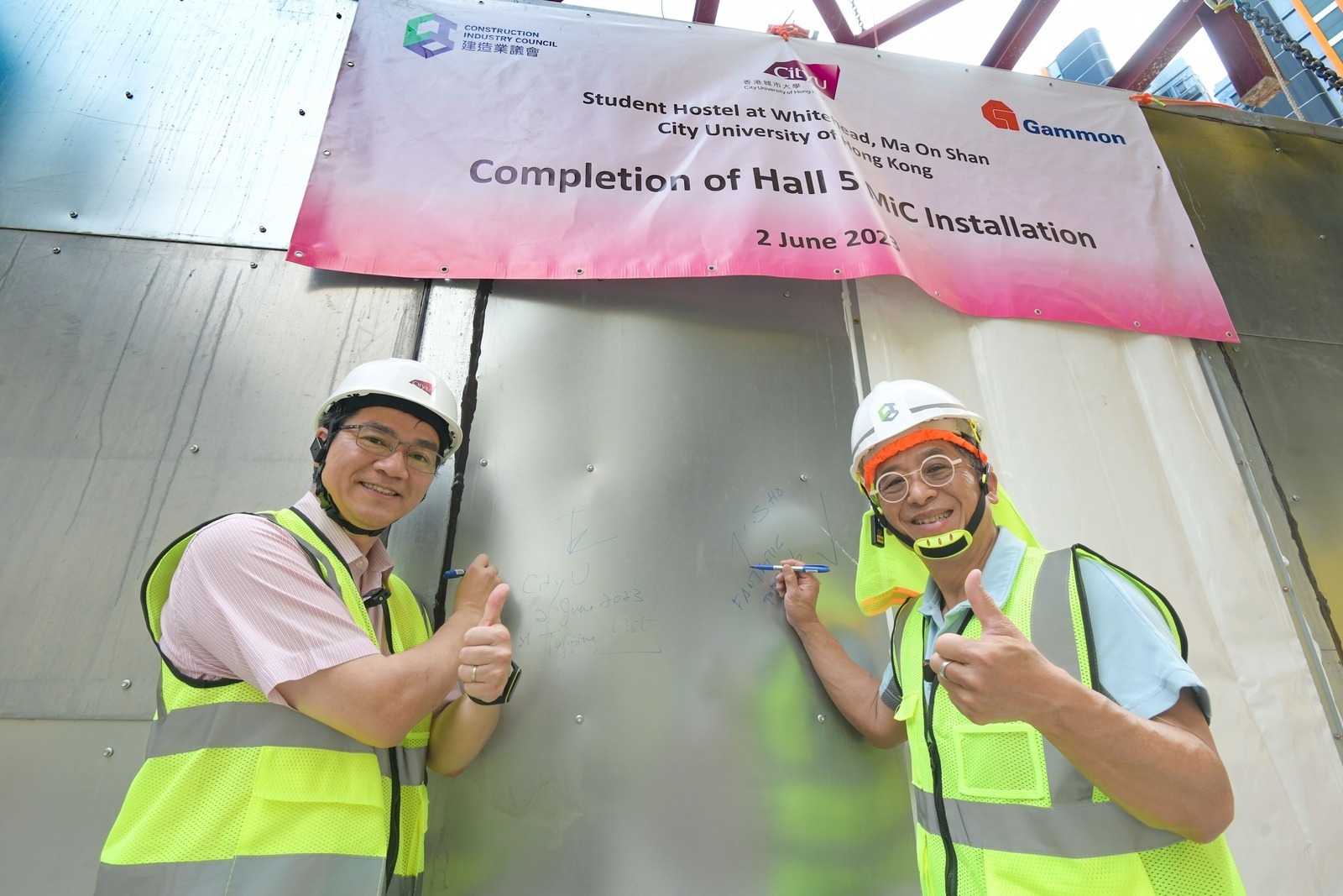 By constructing an improving environment, Hong Kong’s construction industry is dedicated to build a better home for all; while the education sector is devoted to nurture students to become future pillars of the society. Both industries are working hard towards a better future for Hong Kong. Ir Thomas HO, Chairman of the Construction Industry Council (CIC), joined by council members Mr. CHAN Kim Kwong and Ar. Marvin CHEN, visited the fifth phase of the Student Hostel project at City University of Hong Kong (CityU), learning how it innovates and adopts Modular Integrated Construction (MiC) to enhance speed and efficiency, which symbolises the start of a new chapter for the construction industry and the education sector.