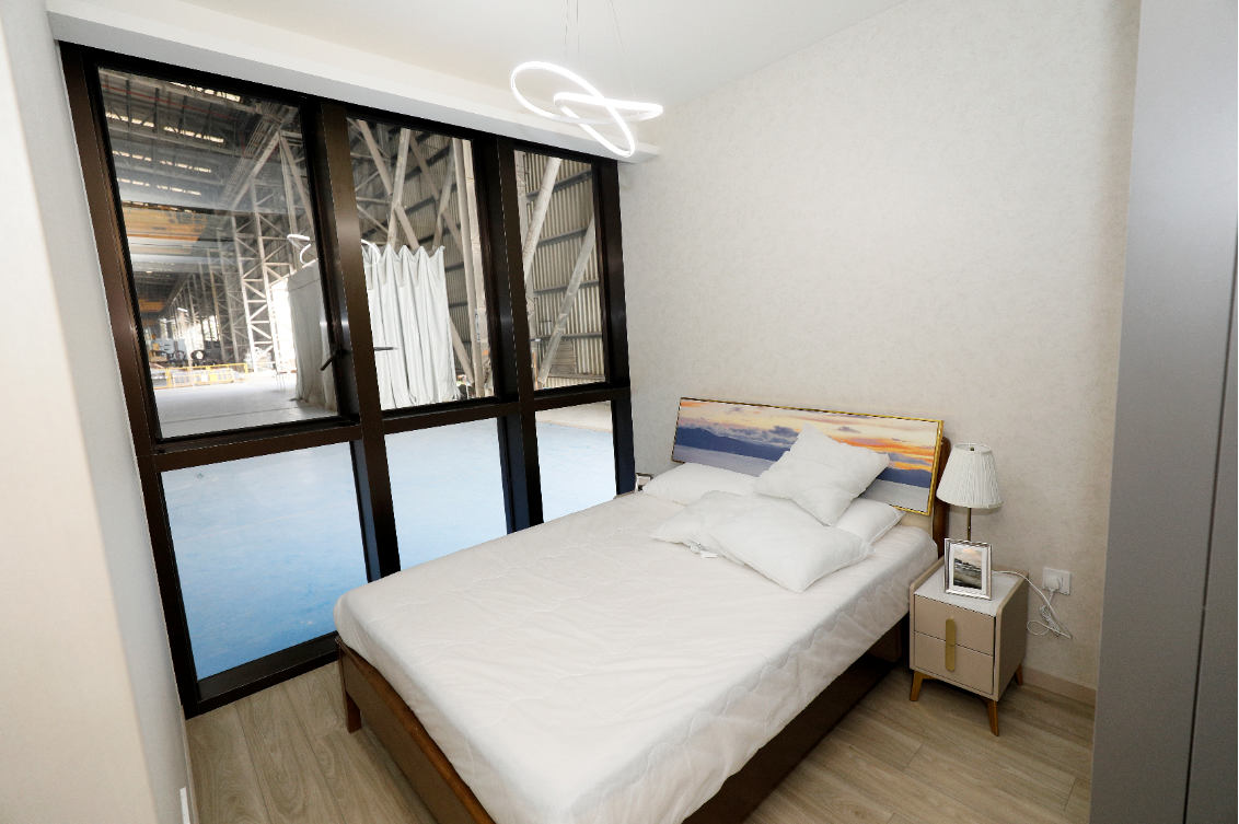 CNQC International Holdings Ltd. (CNQC) has been established in Singapore for 24 years and equipped with many years of experience in MiC application [similar to PPVC (Precast Prefinished Volumetric Construction) in Singapore]. CNQC has established its own PPVC design, manufacturing, transportation and hoisting system. Mr. CHEUNG Yuk-keung, Executive Director and General Manager of CNQC, highly-recognises the sustainability and efficiency of MiC and foresees the huge demand for this advanced construction method in Hong Kong, Macau and the Greater Bay Area, thus partners with Shiu Wing Steel Limited to set up a prefabricated components factory. The factory showcases a mock-up of the Executive Condominium in Singapore, with public housing materials used in the dining and living rooms and private project materials used in the bedroom. The project team said that according to their experience in developing similar projects in Singapore, three different module types are generally used for units of about 500 to 600 square feet.