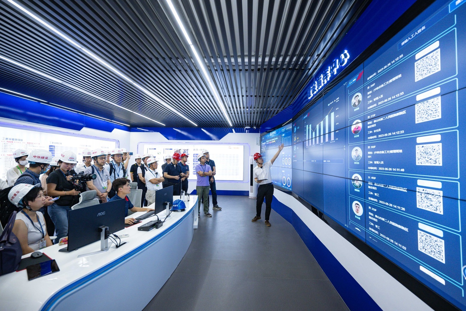 Despite the benefits of the smart construction robots, they cannot go without proper instruction. Therefore, a central construction command platform was developed by the China Railway Group (Southern) Limited, unifying the ability to monitor projects all over the country under the same system, and helping the project team to better track the whole construction process. The platform contains a “smart quality control” module that uses big data analytics and real time surveillance to create a “smart quality inspector” on the cloud, to closely monitor and document the production quality throughout the construction process. Not only can workers’ online profile, and their working status be viewed within the module, it can also reveal precise information regarding various parts of the construction process, such as materials used, weight of different components, and even the temperature of the concrete. The system automatically looks for any abnormalities and any potential problems the workers may face in the construction process, and issue reminders accordingly, in order to save time, and improve efficiency at the management level. Ir HO was impressed by the functionality of the command central, and the positive effects it will bring to driving the trend in adopting smart construction methods.