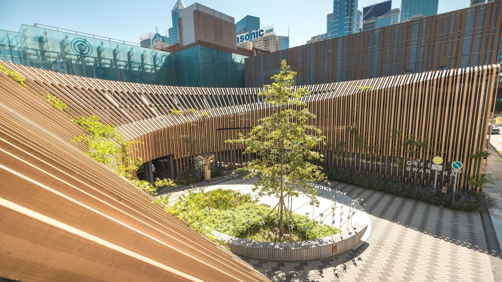 A reform in engineered formwork system proves that the industry is moving forward to innovation, similarly, this attitude is also reflected in the construction of community facilities. As green living culture has been instilled in public’s lives, the government thus strengthened the support for building a new community recycling network by developing Recycling Stations, with the aim to encourage the public to go green. With a unique architectural feature, GREEN@WAN CHAI is one of those that comprises the network. Its streamlined shape trellis roof provides an iconic enclosure, shielding the electronic and mechanic installations below and reducing solar heats, creating both aesthetic value and functionality.