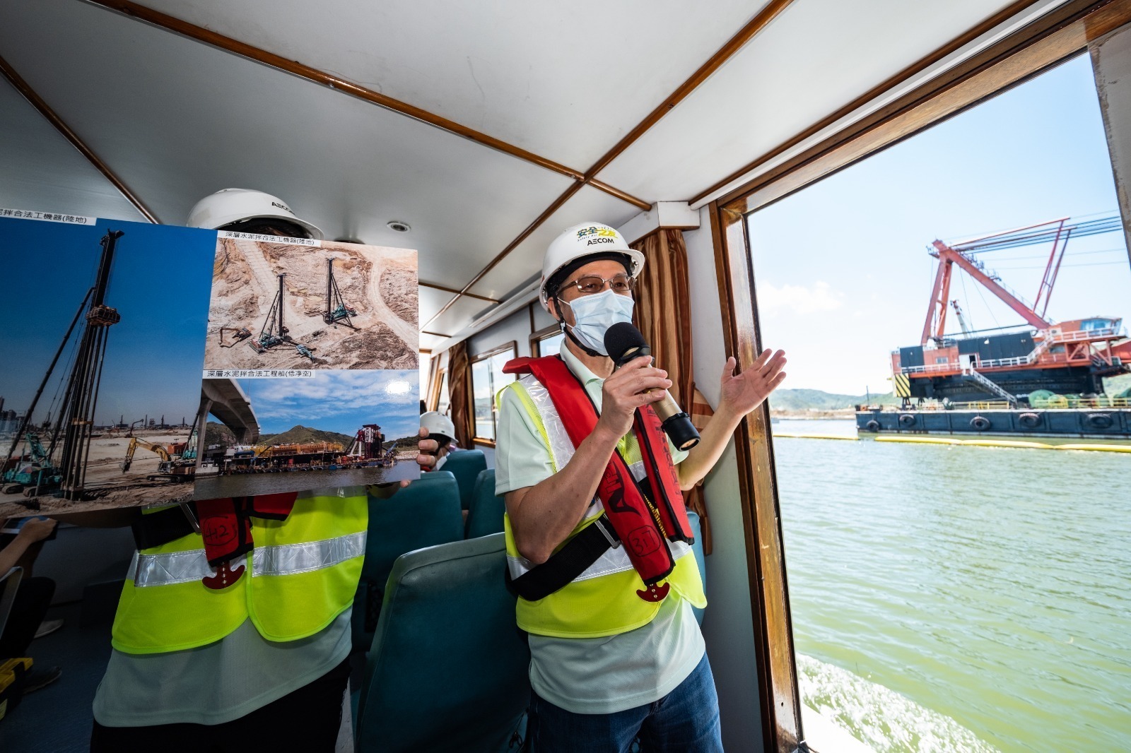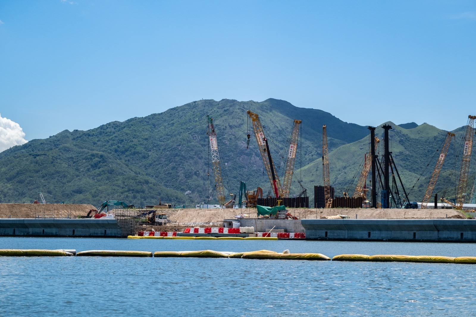 There is always a debate on the coexistence of development and conservation, while the TCNTE project team has adopted advanced environmental-friendly technologies to ensure that balance can be striked. Different from the traditional method of dredging or removing the marine mud which would easily cause pollution, the TCNTE project team employed the non-dredged “Deep Cement Mixing” (DCM) method, which involves the inection of cement slurry from mixing shafts on the works vessel into marine mud, mixing them with the soft marine mud while rotating. The marine mud will then be solidified to form a strong cement mixing column, which will form a DCM treatment zone in the seabed to support the seawall to be constructed above. Compared to the conventional method, the use of DCM is able to lessen the impact of reclamation on water quality and marine ecology nearby, and carbon emission is also reduced as no sea transport is required for dumping the marine mud.