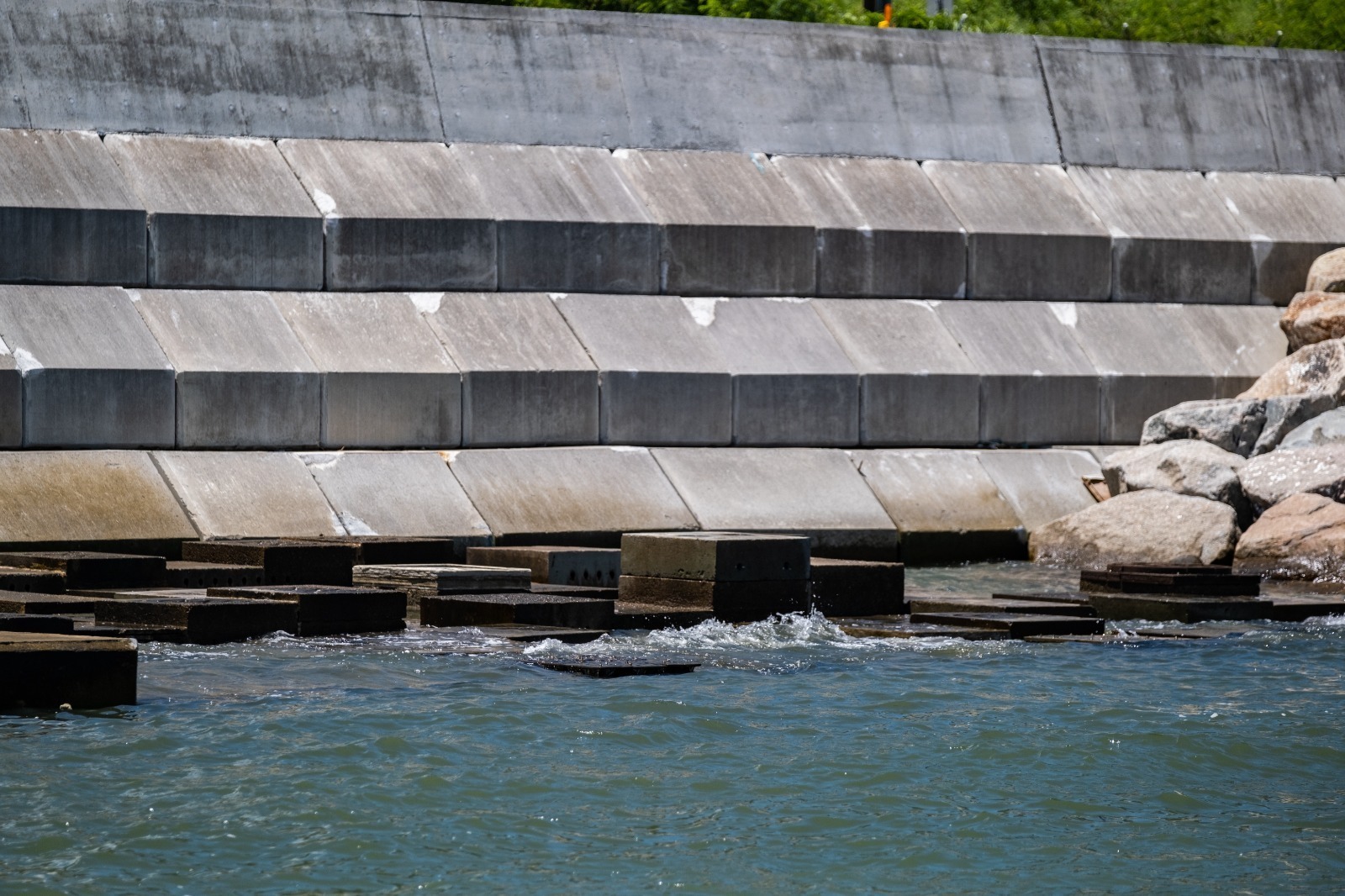 In order to mimic the physical properties of the natural inter-tidal zone, the TCNTE project team will set up three types of eco-shorelines of total length about 3.8km along the new shoreline, namely mangrove eco-shoreline, rocky eco-shoreline and vertical eco-shoreline. In common practice, artificial shorelines mainly consist of vertical seawalls or rubble mound seawalls, which are not suitable for organic matters and micro-organisms to attach and grow, whereas the eco-shorelines will provide favourable conditions to improve biodiversity. During the visit, representatives from CIC took a boat trip to the trial site at Siu Ho Wan, where the TCNTE project team gathers data and information to refine the eco-shoreline design. Up till now, more than 20 species, including Lunella coronata granulata, Uca acuta and Periophthalmus modestus, are found to have settled on the eco-shorelines.