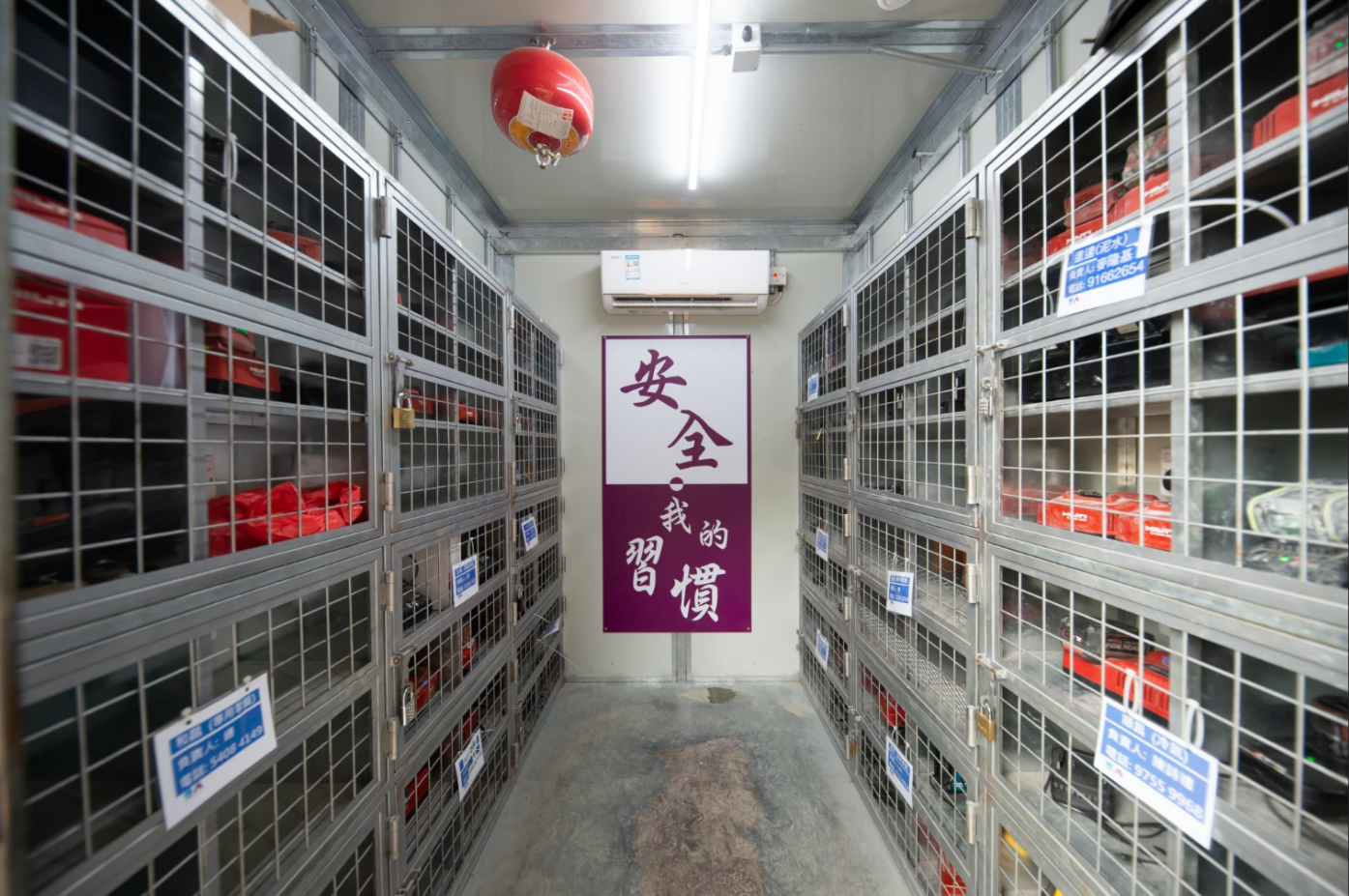 As electric-powered equipment is now common at construction sites, a large number of batteries require recharging every day, creating another source of potential risk. In response, the project team at the Queen Mary Hospital site restricts all recharging to fire-resistant stations equipped with air conditioning and firefighting equipment. Smart locks were installed on the site’s distribution boards so that power switches may only be activated by designated and registered electrical workers.