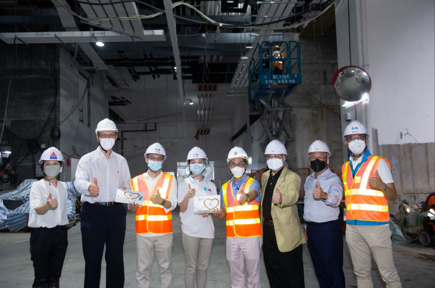 Workers A variety of building technology and safety measures are used to keep frontline workers informed of areas of special attention on a daily basis so as to raise their safety awareness. The project team used BIM to create a 4D animation of the actual site environment, and integrated the model into the VR CAVE. Workers walked through this immersive environment to gain a greater understanding of potential site risks. This has greatly enhanced the effectiveness of safety training. Another thoughtful initiative was the installation of a dispenser to provide workers with hot, cold and even sparkling water. This extra amenity allows workers to chill out during breaktimes.