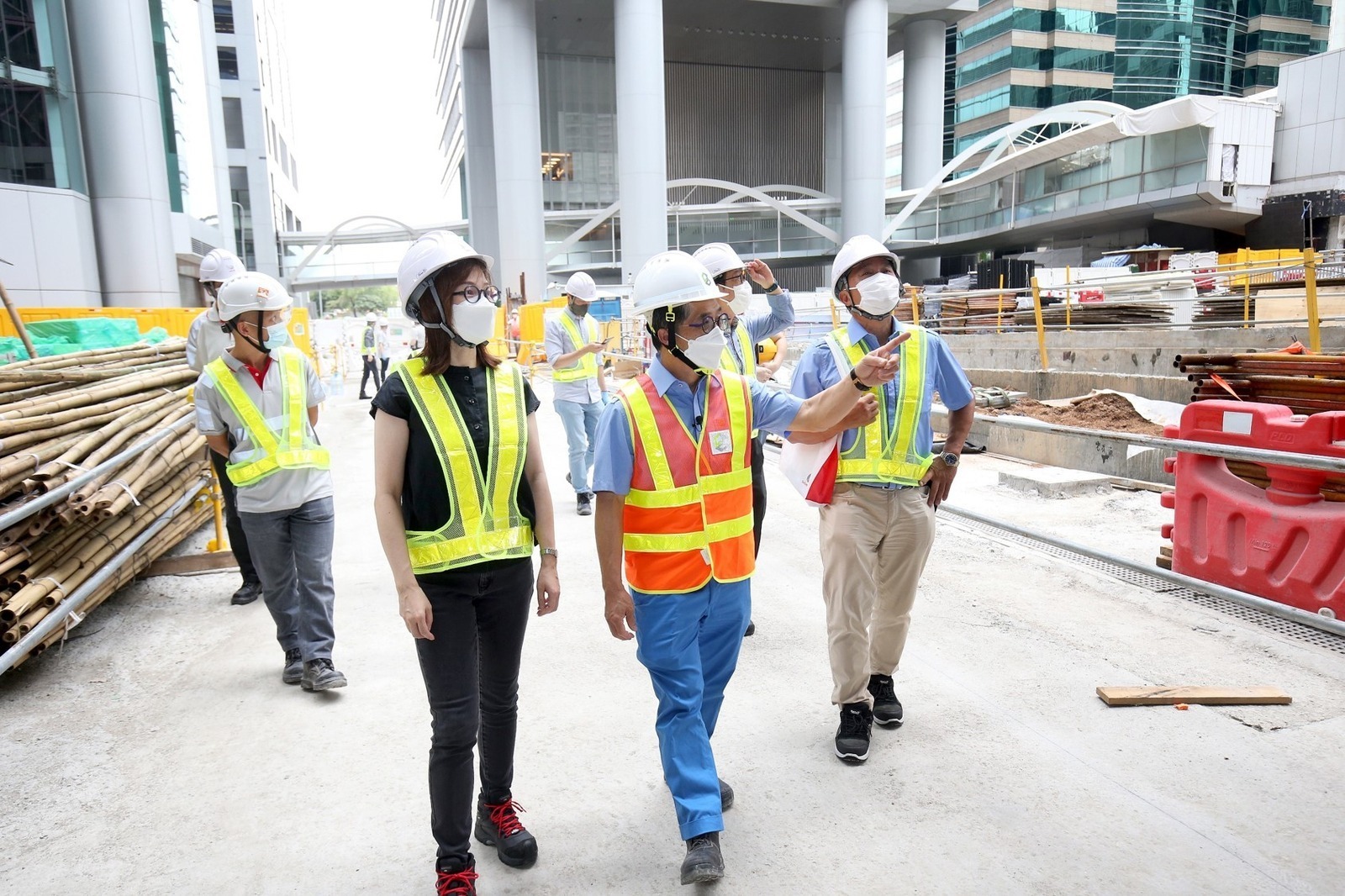 In addition, in order to protect the safety of frontline workers, the contractor applied innovative technology and arranged smart safety helmets with headlights and temperature and heartbeat sensors for workers. The safety helmet is connected to the building information model to monitor the condition and location of workers from multiple angles real-time. The system sends out alert when abnormality is detected through the Internet of Things (IoT) network, which enhances the communication and emergency management in the construction site while ensuring workers’ safety.