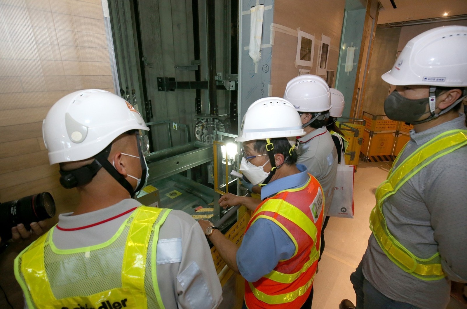 We are seeing more and more skyscrapers in Hong Kong as the demand for land grows. Elevators are the main axis of buildings. As our buildings grow taller, the importance of elevators to buildings also increases, so as the advancement in elevator installation technology. Ir Ho On-sing, Thomas, Chairman of the Construction Industry Council and Mr. Chan Kim-kwong, Council Member visited the construction site of Two Taikoo Place, which was part of the "Taikoo Place Redevelopment Project". The visit showcased technologies adopted in the installation of elevators, the use of various robotics technologies in the construction site and discuss how to lead the industry to go forward and create a safer environment.