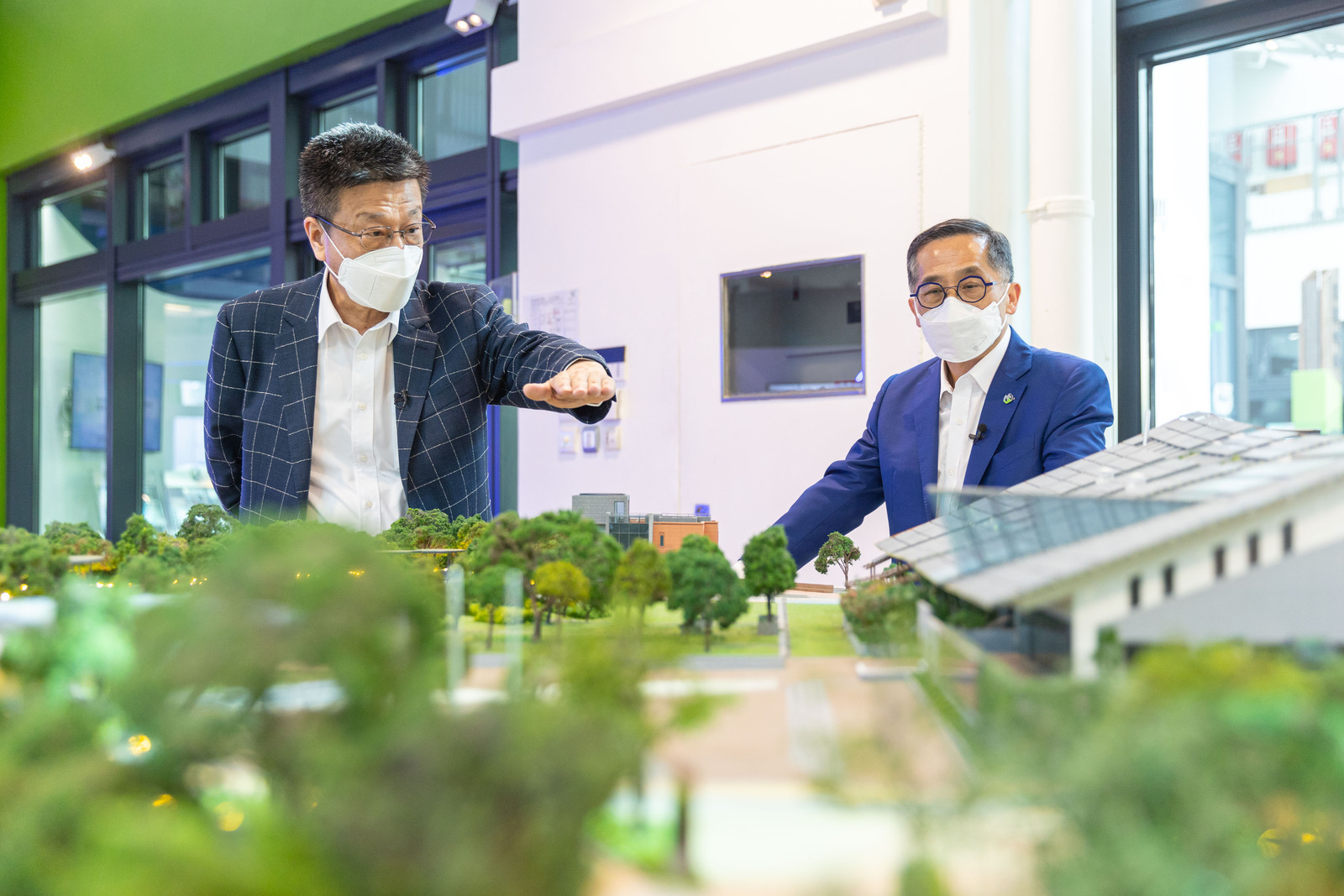 Ir Thomas HO, Chairman of the CIC, visited the CIC–Zero Carbon Park (CIC-ZCP) in Kowloon Bay in late April to learn about the latest development of this landmark facility. Established in 2012, CIC-ZCP serves as an exhibition, education and information centre to raise awareness of the importance of low-carbon living, showcasing the state-of-the-art eco-building design and technologies to the local and international construction industry, and eventually innovates the stakeholders to deploy new technologies as a way to reduce carbon footprints.