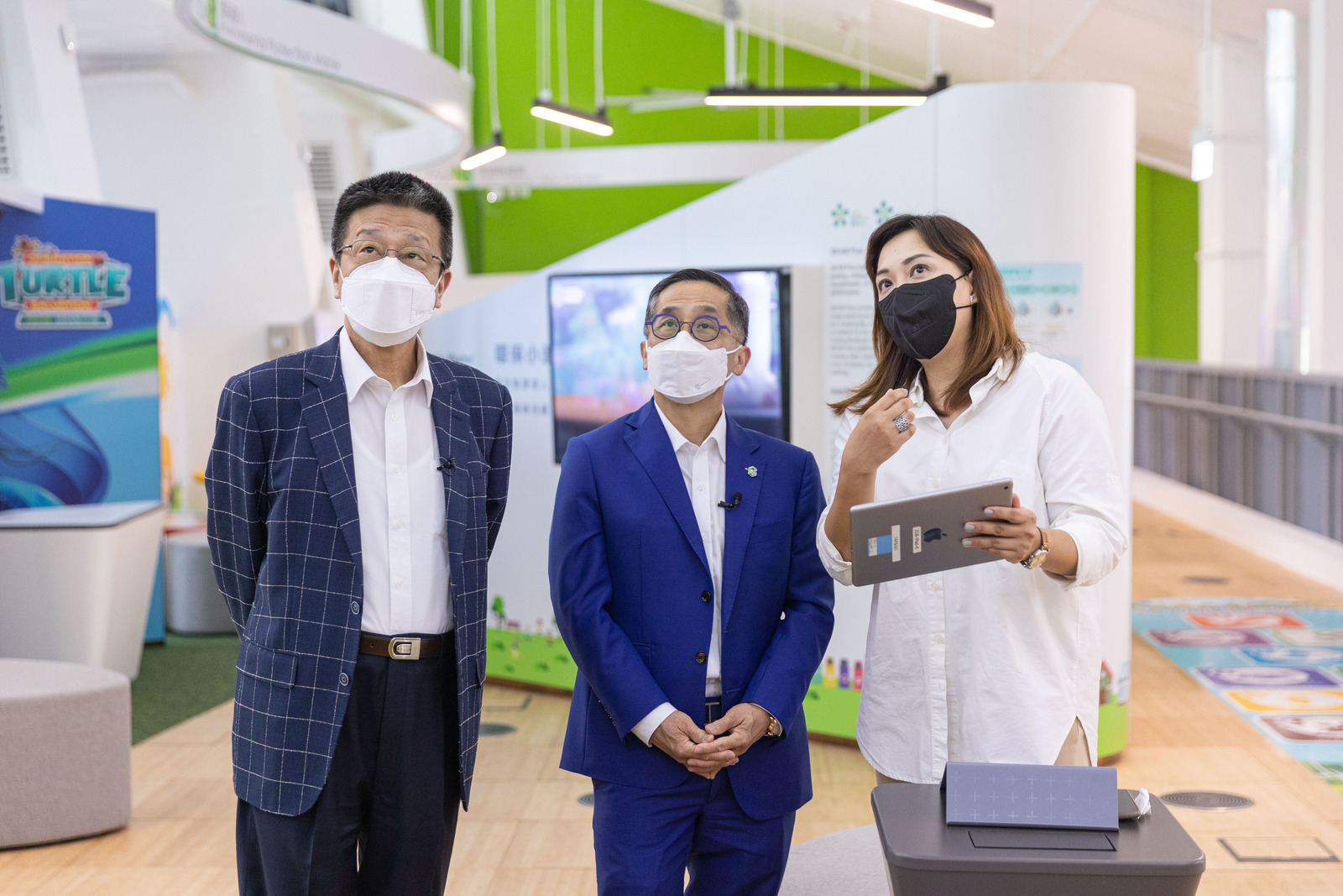 CIC-ZCP has never stopped upgrading throughout the decade. Chairman of Zero Carbon Building Management Board, Mr CHONG Kin-lit, Paul explained that the park has installed the “Air Improvement Photovoltaic (AIPV) Glass Canopy” to replace the old canopy of the cafeteria in CIC-ZCP. The glass canopy not only offers daylighting, on one hand it generates renewable energy from sunlight through cadmium telluride nano thin-film photovoltaic technology. On the other hand, the quantum dot nano top coating system decomposes PM2.5 and volatile organic compounds, which will help improve air quality. Ir Thomas HO appreciated the efforts CIC-ZCP has paid to put new technologies into practice for the benefit of the members of the public.