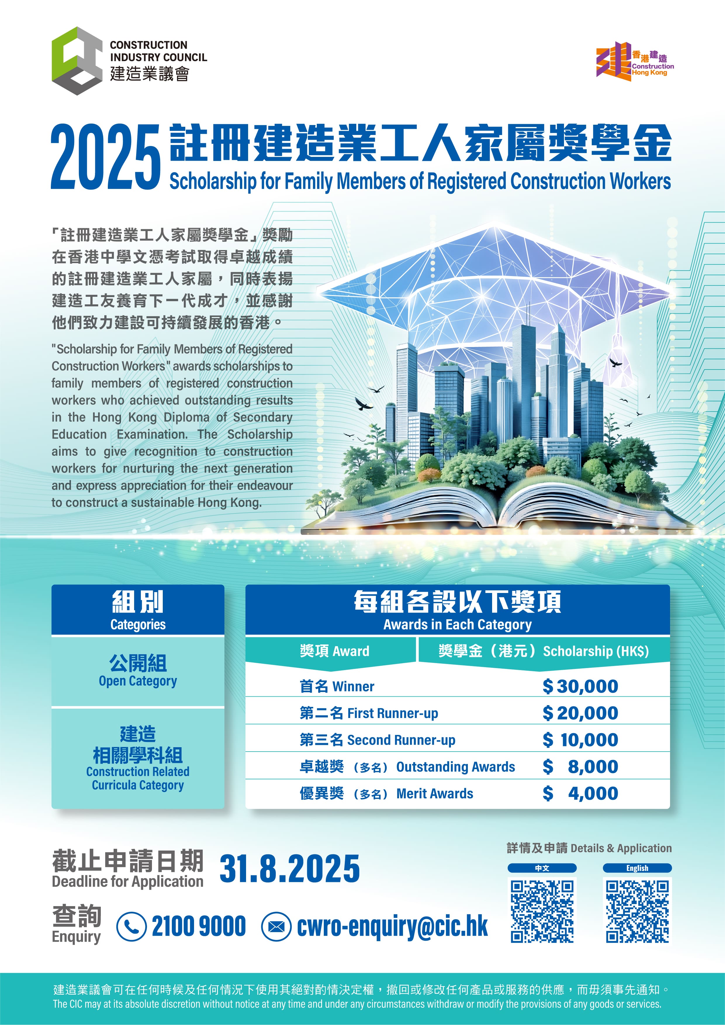 • The applicant’s parents / siblings / legal guardians must not be a full-time employee of the Construction Industry Council.